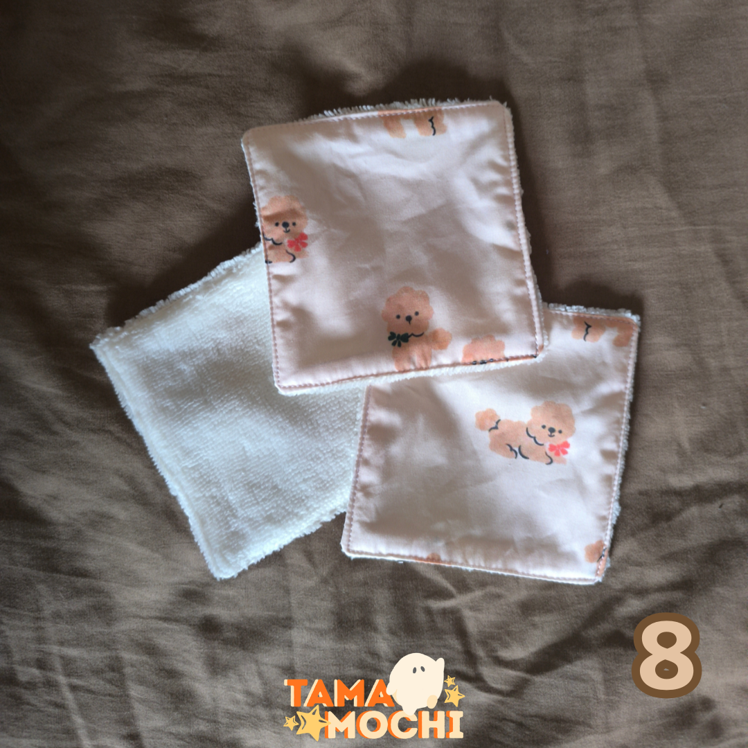 Tu as un coté blanc en éponge bambou qui est une matière toute douce que tu utilisera et un coté coton.